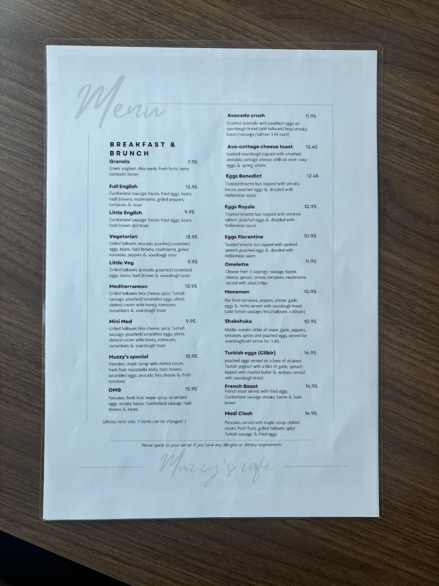 Muzzy's Cafe Menu